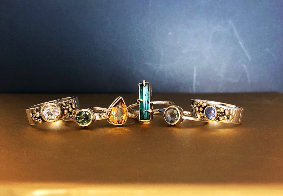 Her work is influenced by the beauty there is to be found in nature and a lifelong love for stones of all kinds, from beach pebbles to diamonds. She works closely with clients to produce commissions ranging from wedding and engagement rings to reworking old treasured heirlooms into contemporary wearable pieces and also sells her work in galleries in Cornwall and The Isles Of Scilly.