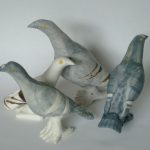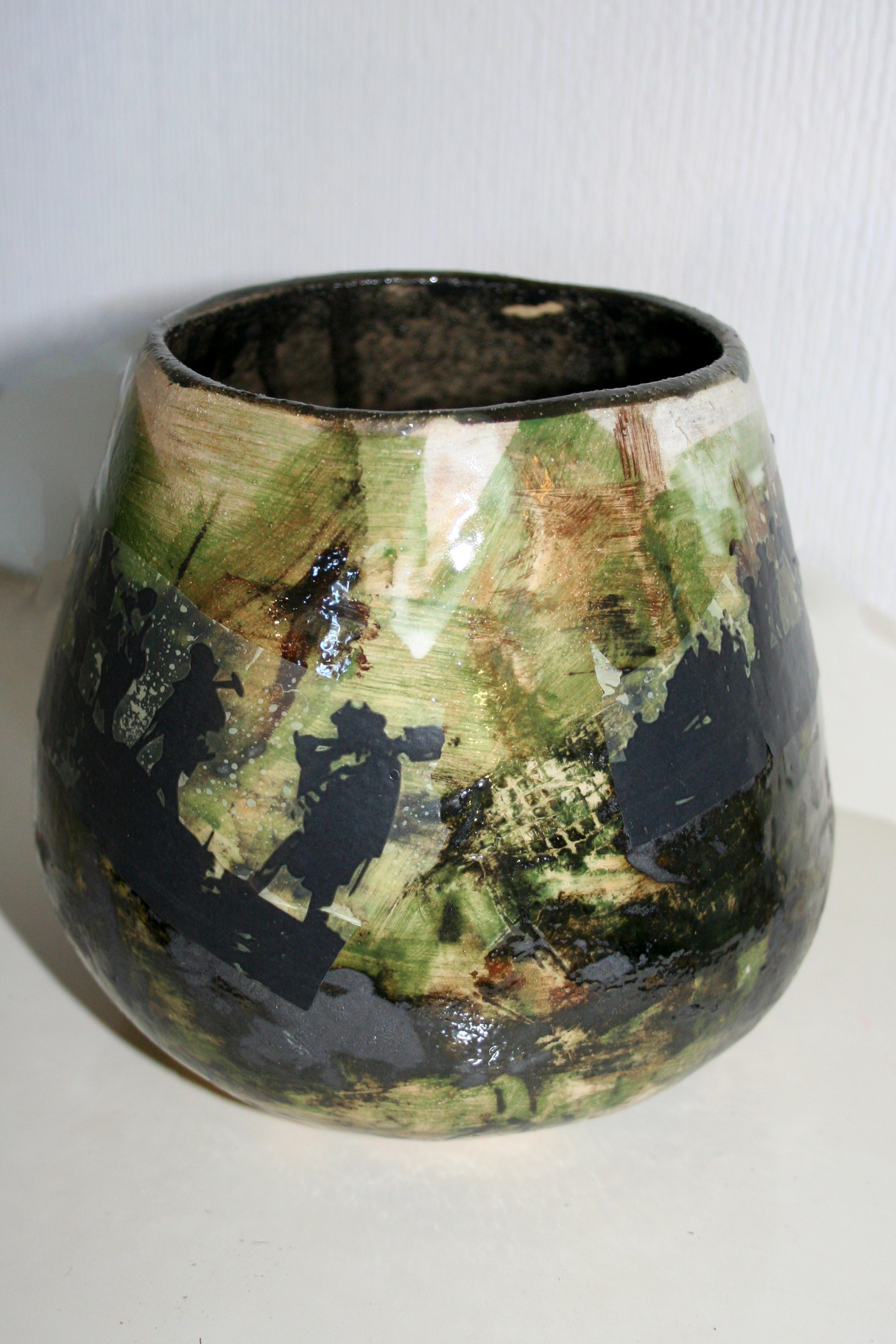 I have also produced some smaller pieces of work by reviewing a section of the poem by Wilfred Owen (“Dulce et decorum est”), and created contemporary pieces using sombre coloured slips and silhouette images.